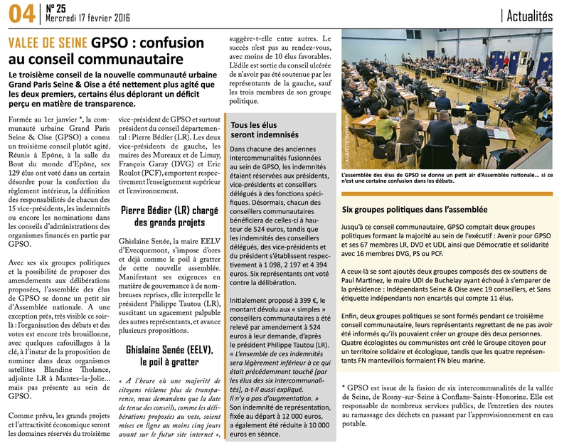 Vous trouverez ci-joint un article de la Gazette des Yvelines du 17 février 2016.