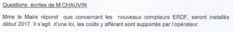 Dans le compte rendu du conseil municipal du 6 juillet 2016 figure cette information lapidaire, en réponse à une question écrite de Jean-Pierre Chauvin :