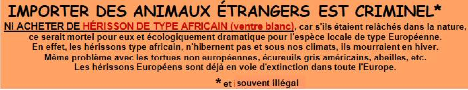 LE SANCTUAIRE TIENT A PRECISER QUâIL EST « ILLEGAL DE DETENIR DES HERISSONS », MERCI DE NOUS APPELER AFIN QUE NOUS PUISSIONS VOUS REDIRIGER VERS UN CENTRE DE SOINS OU UN VETERINAIRE.